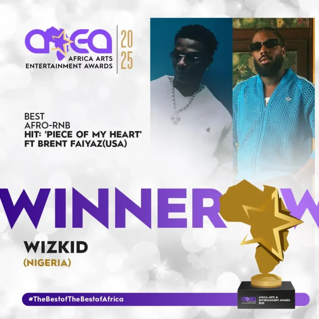 Nigerian superstars won multiple categories at the recent AAEA Music Awards. The Nairobi-based award ceremony awarded Wizkid’s ‘Piece of My Heart’ featuring Brent Faiyaz the prize for the Best Afro-R&B song.