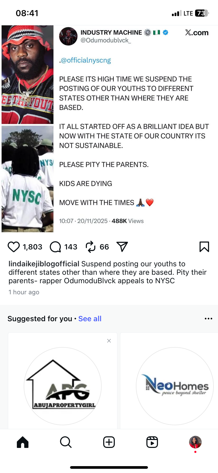 Nigerian rapper OdumoduBlvck has called on the National Youth Service Corps (NYSC) to reconsider its posting policy, urging the agency to stop assigning corps members to states far from where they reside.