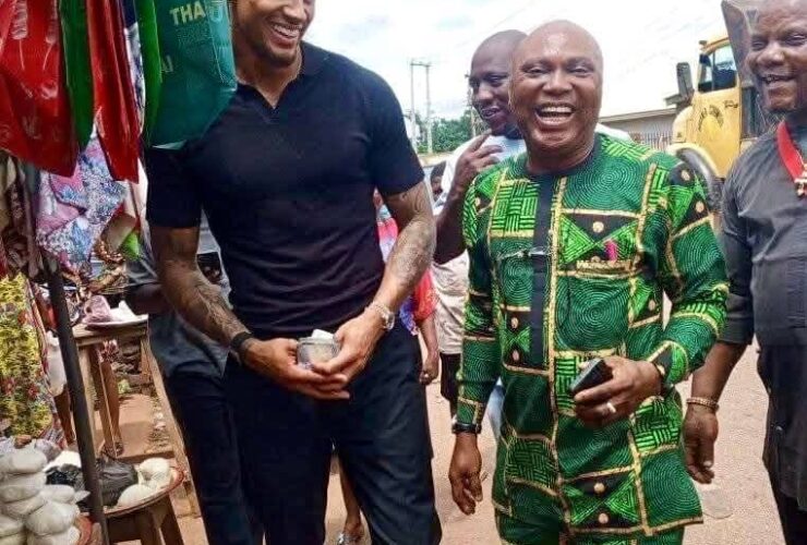 Super Eagles goalkeeper Maduka Okoye paid a courtesy visit to Governor Peter Mbah of Enugu ...