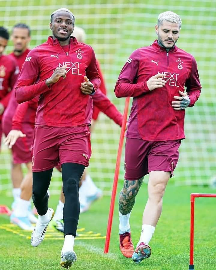 Nigerian striker Victor Osimhen and Argentine forward Mauro Icardi were both spotted in full training today as preparations intensify for their upcoming Champions League showdown against Liverpool.